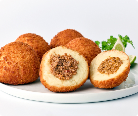 Stuffed Potato Balls (aka Papas Rellenas or Rellenos de Papa) are a savory combination of mashed potatoes and seasoned meat much like a shepherd’s pie but with a Latin twist. Full size varieties should be tempered (slack-thawed) prior to deep frying.