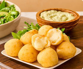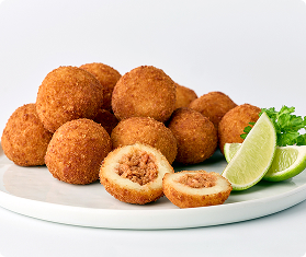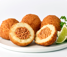 Yuca Bites are our newest specialty. Lightly breaded, generously filled, with a creamy cassava masa, they are a scrumptious snack basket option for your appetizer menu. Best when deep-fried but also delicious out of a convection oven.