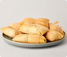 Our tamales are Cuban-style, which is different from Mexican and Central-American recipes. Our corn masa is seasoned with a savory blend of sazón and our special ham is minced and mixed into the masa before hand-wrapping in natural corn husks. To prepare, tamales should be steamed until fully cooked.